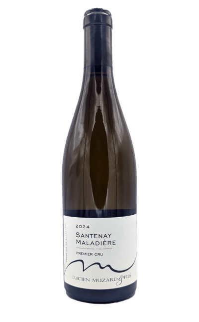 Le Santenay 1er Cru "Les Maladières" blanc du Domaine Lucien Muzard est une expression lumineuse du terroir bourguignon. Située sur un coteau pentu et caillouteux orienté sud-est, cette parcelle d’exception repose sur des calcaires fissurés recouverts d’une fine couche de marne, conférant au vin une minéralité et une fraîcheur remarquables. Plantée en 2013, la vigne s’étend sur 57 ares et est cultivée avec soin : labour des sols, ébourgeonnage, relevage, effeuillage et vendanges manuelles garantissent une maturité optimale.